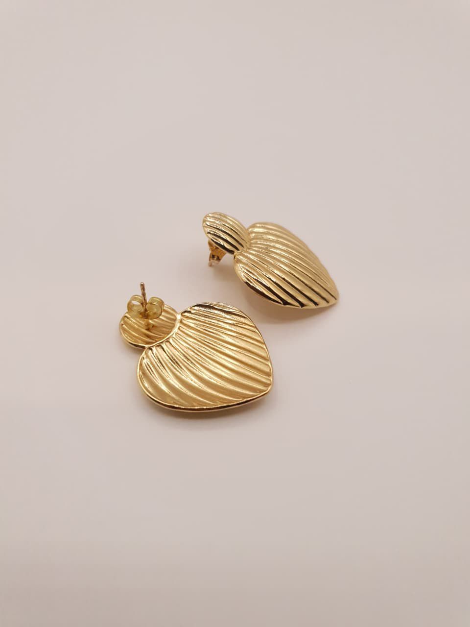 These ribbed heart drop earrings feature a beautifully textured finish with fine grooves that catch the light from every angle. The sculpted heart silhouette paired with a rounded stud top creates a statement look that’s elegant, playful, and timeless all at once.