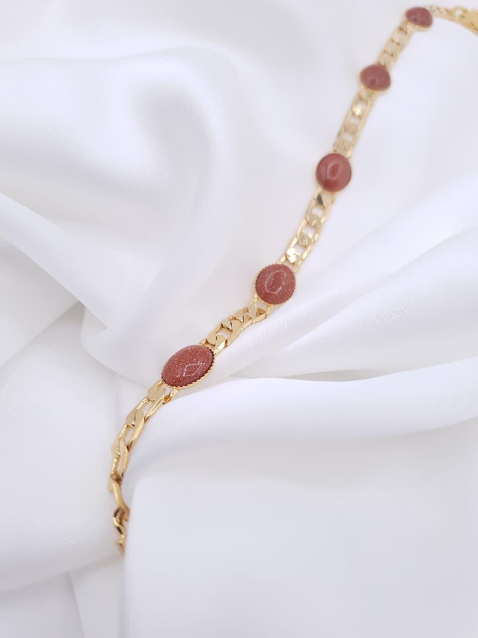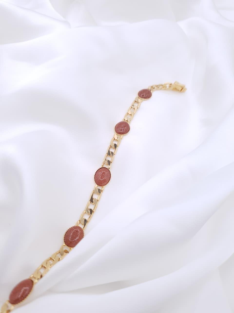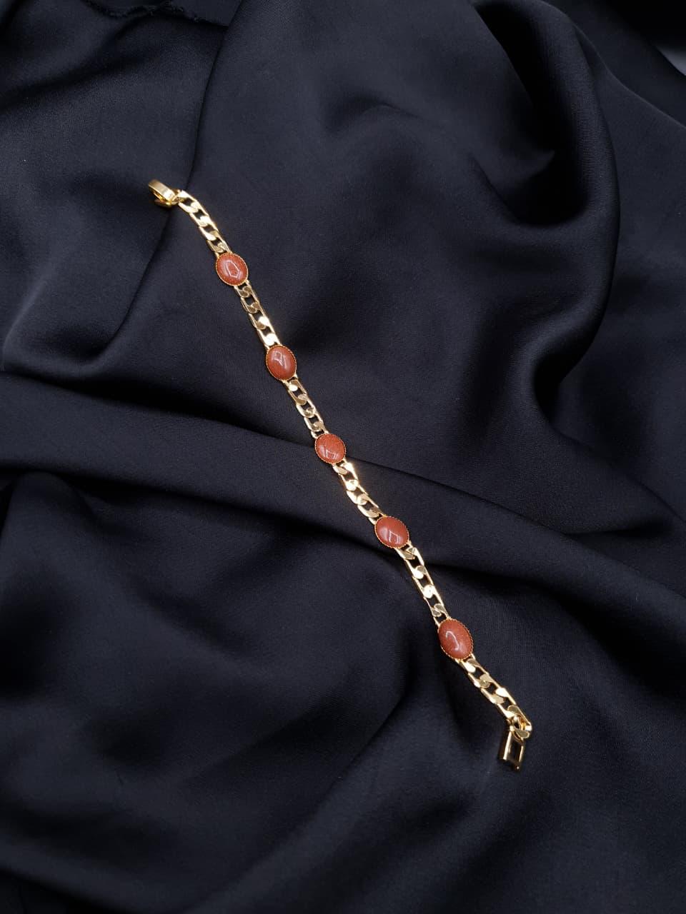 A graceful blend of classic charm and modern elegance. This gold-plated link bracelet is adorned with rich ruby-tone oval stones, delicately set along a sleek chain to create a refined, eye-catching look."